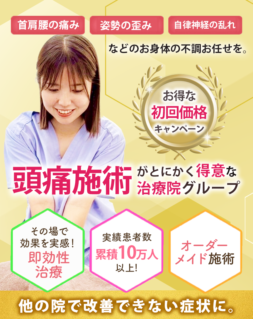 ※群発性頭痛は当院での施術対象外となります。来院時に群発性頭痛の可能性がある場合は、適切な医療機関をご紹介いたします。頭痛でお悩みの際はぜひ当院にご相談ください。