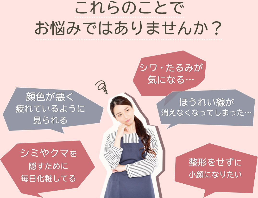 年齢が重ねるにつれてシワ・たるみ・ほうれい線などが化粧でごまかせなくなってきた…